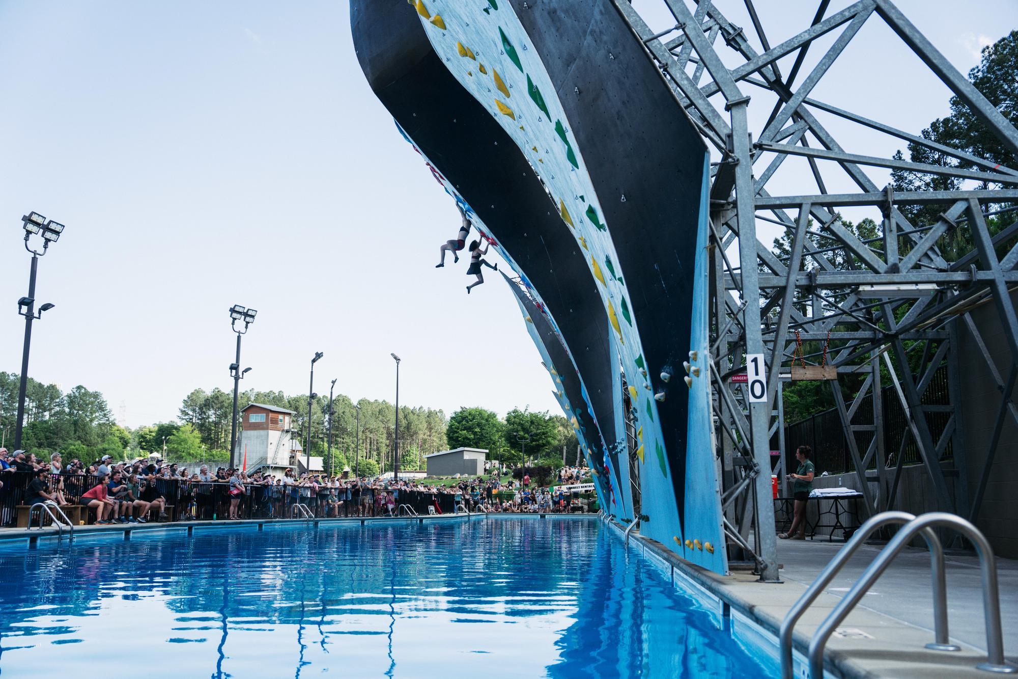 Free-solo climb over 45′ high at the world’s only artificial deep-water solo complex.
