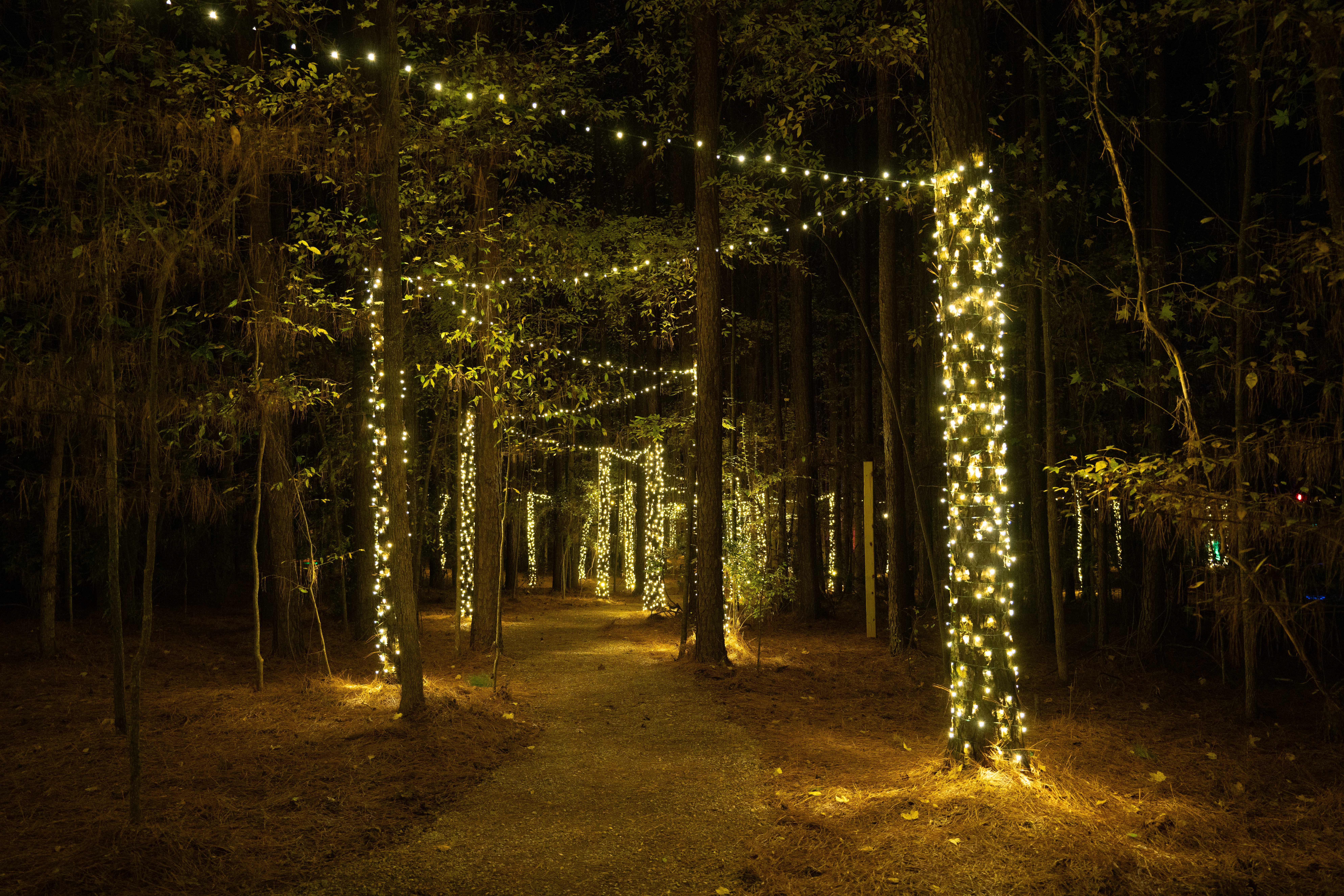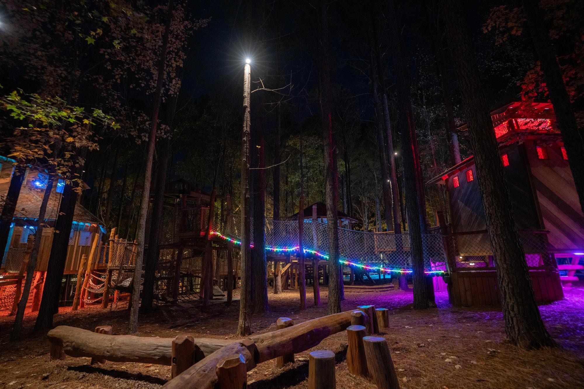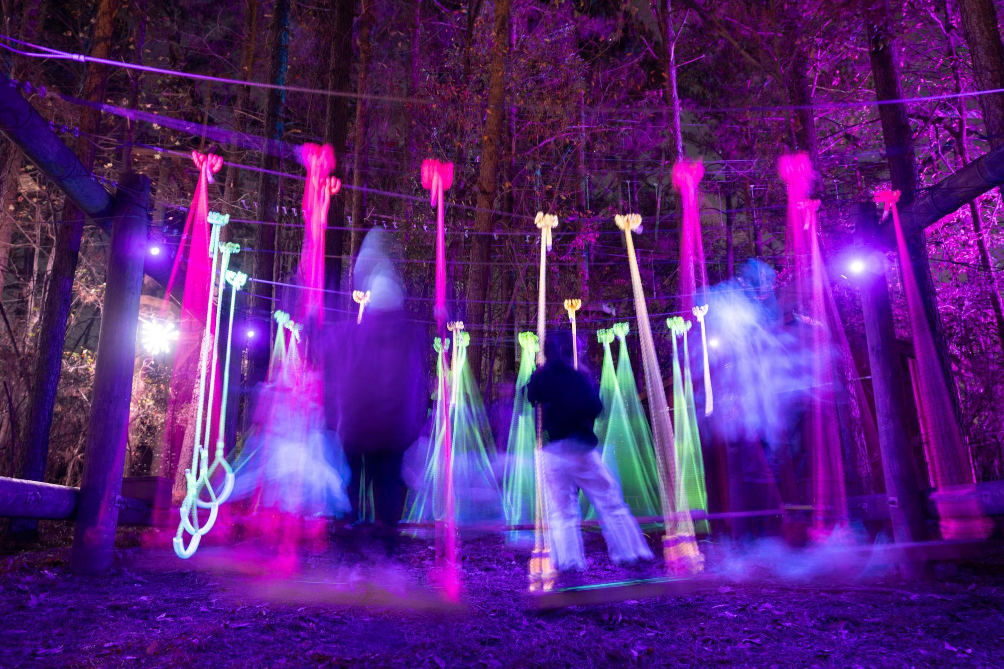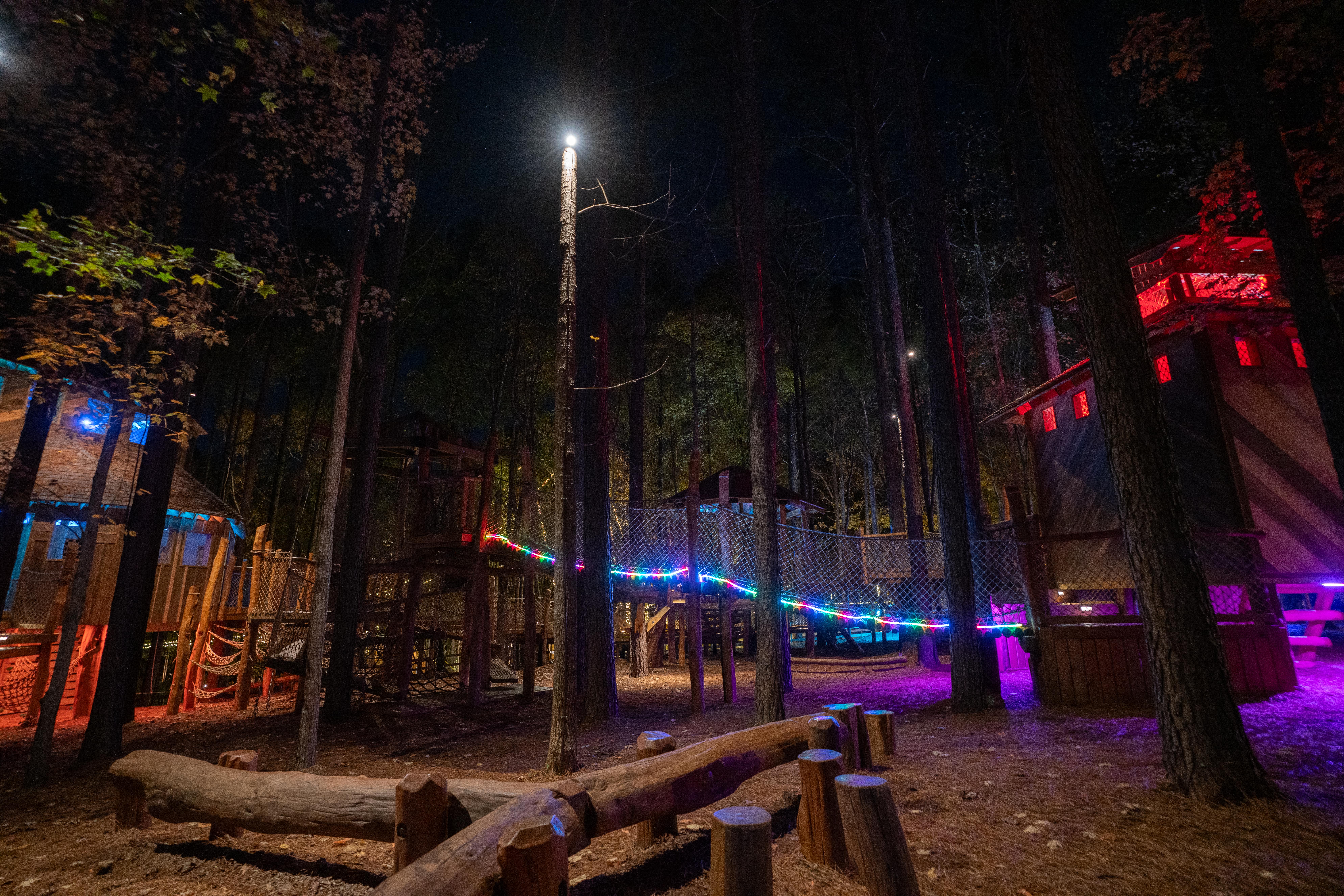 Follow an illuminated trail featuring suspension bridges and activities for all ages.